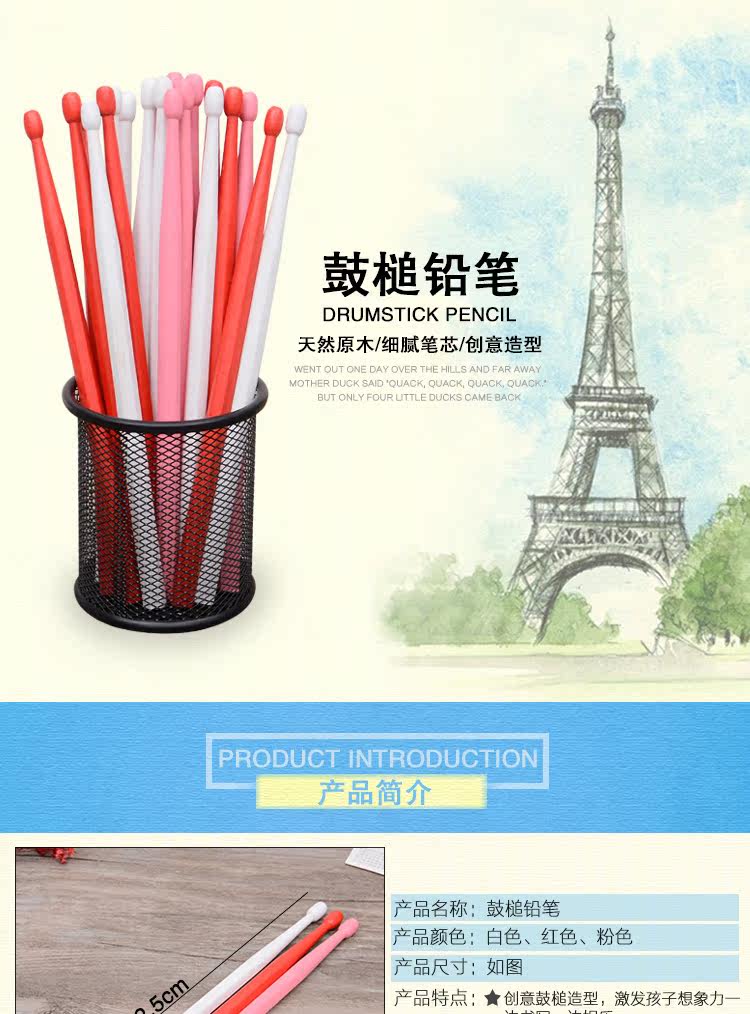 英国同款鼓槌铅笔彩色鼓棒铅笔drumsticks pencil