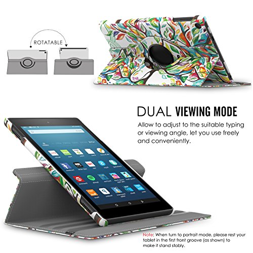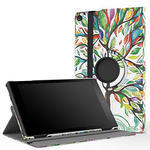 MoKo Case for All-New Fire HD 8 2017 / Fire HD 8 2016 - 360 Degree Rotating Cover with Auto Wake / Sleep for Amazon Fire HD 8 (7th Gen, 2017 / 6th Gen, 2016) 8" Tablet, Lucky TREE