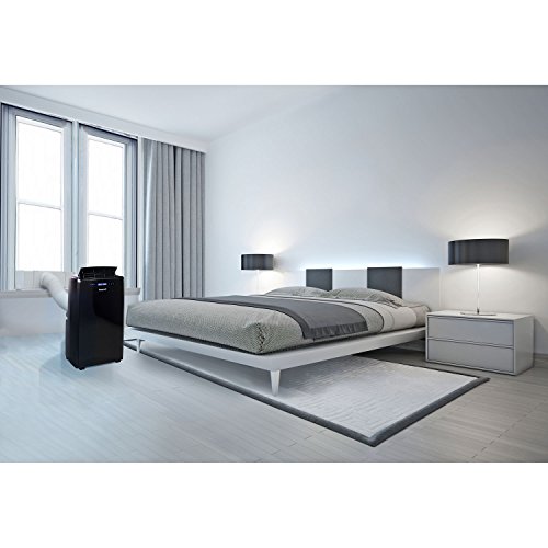 -. Feature : Powerful air flow and quiet operation - Cools rooms up to 700 sq. ft. / 14000 BTU (ASHRAE-128 Standard) / 7500 BTU (DOE+ 2017 Standard) / Auto Evaporation - no bucket to empty (except in areas with high humidity), Long-Lasting, Washable Dust Filter, Quick & Easy installation (Exhaust hose length: 10.6" to 59", Window Bracket Width: Min. 26.6" or 33.1" to 49.6") / Built-in Dehumidifier with continuous drain system removes up to 111.6 pints moisture per 24 hours / 3 speeds, Sleep mode, digital controls, 24 hour energy saving timer & remote control included