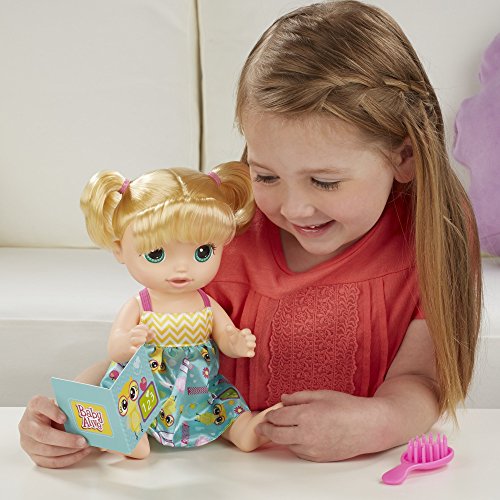 - Includes doll, outfit, brush, and book.