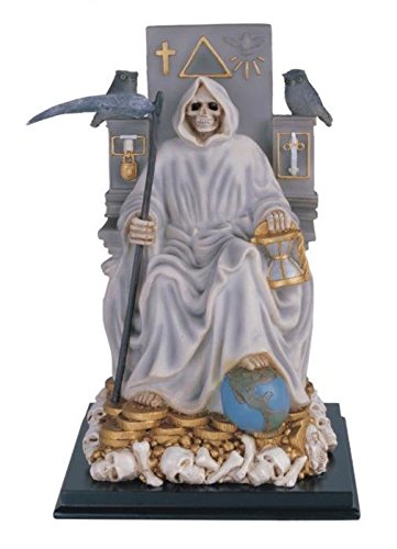 12 Inch Sitting White Santa Muerte Saint Death Grim Reaper Statue