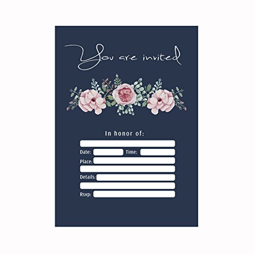 30 Navy Blue Floral Retro Fill-In Invitations and Envelopes, Wedding Invitation Cards, Bridal Shower, Baby Shower, Engagement, Party, Birthday Invites
