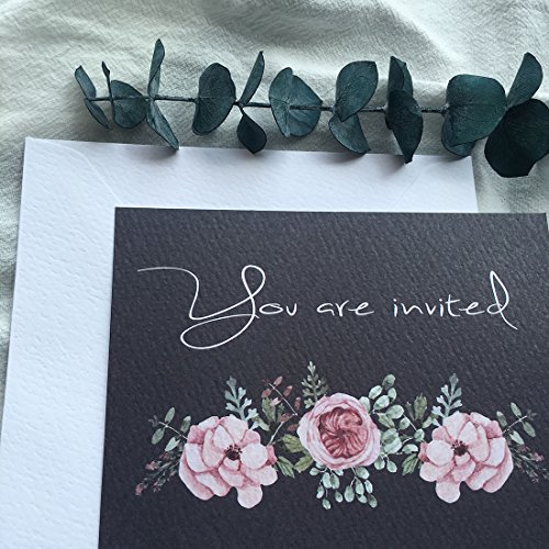 - HIGH QUALITY - The invitations are flat printed on a high quality commercial press, printed in finest quality heavy weight white paper in the thickness of 115lb/350gsm. The white envelopes are also made with high quality paper!