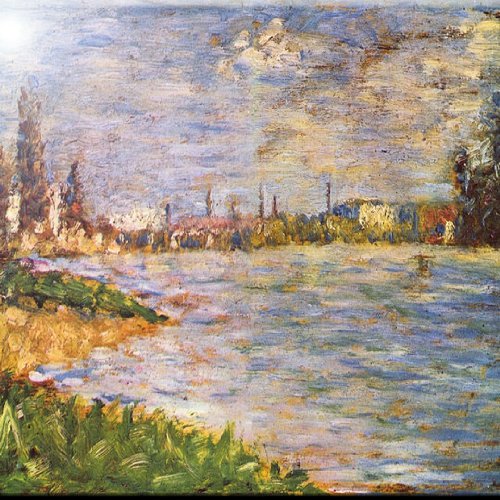 Rikki Knight RK-12intilec-3094 12" X 12" Georges-Pierre Seurat Art The Two Banks Design Ceramic Art Tile