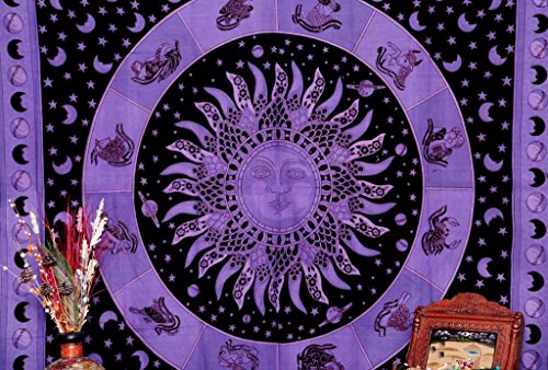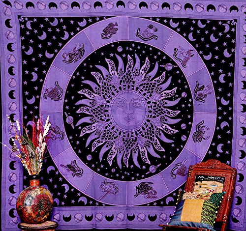 HANDICRUNCH ASTROLOGY CELESTIAL WALL HANGING BIZARRE ZODIAC SIGN INDIAN TAPESTRY