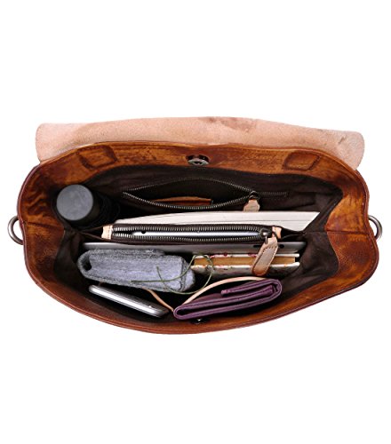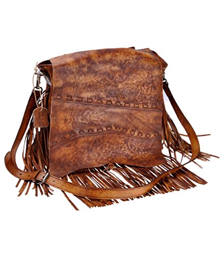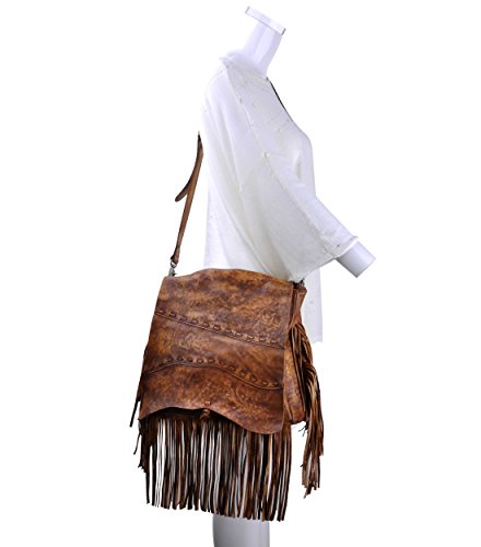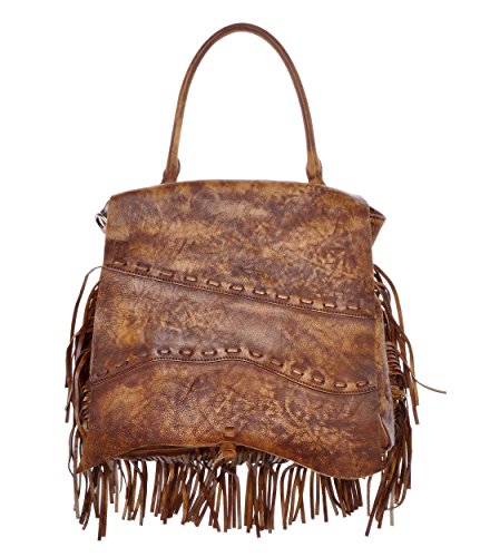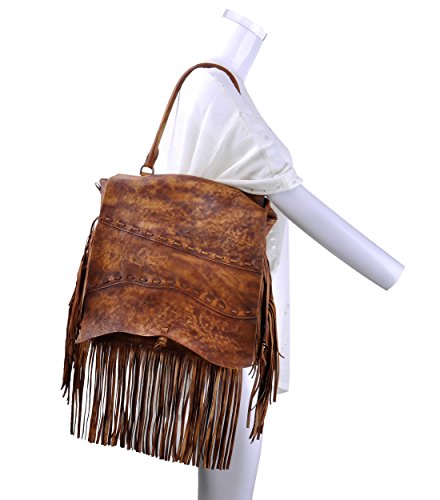 ZLYC Women Dip Dye Leather Stitch Design Fringe Tassel Top Handle Crossbody Bag, Brown