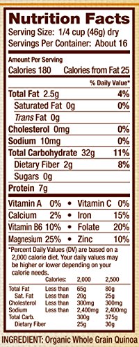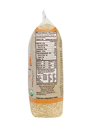 Bob's Red Mill Organic Whole Grain Quinoa is a true nutritional gem! Part of our Grains of Discovery line, Quinoa has so much to offer: It's gluten free, organic, whole grain, and offers complete protein and numerous minerals. It's ready to eat in just about 30 minutes. Quinoa can play the starring role in your pilaf, salad, or veggie burger. For breakfast, lunch, or dinner; side dish or main dish; quinoa will keep you fueled throughout the day! Certified Organic by QAI. Like all our gluten free-labeled products, this product is processed in a dedicated gluten free facility and R5-ELISA tested to confirm its gluten free status.Feature