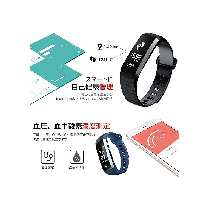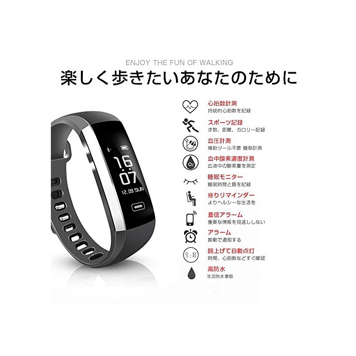원본상품명: itDEAL スマトブレスレット 防水 活動量計 スマトウォッチ 多機能 [ 心拍計 + 計 + 血測定 + 睡眠測 ] タッチ操作 Bluetooth4.0 IP67防水 着信通知 Li