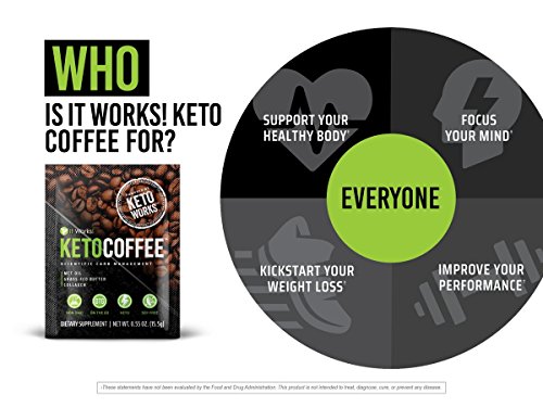Studio : It Works Publisher : It Works Binding : Health and Beauty Product Description Fuel your body and brain with It Works Keto Coffee powered with Grass-Fed Butter and Medium Chain Triglycerides (MCTs), this instant keto coffee helps to increase your body's ketone production to rapidly breakdown fat, boost your energy, and sharpen your focus! Easy mix with 6-8 ounces of hot or cold water and enjoy! 0