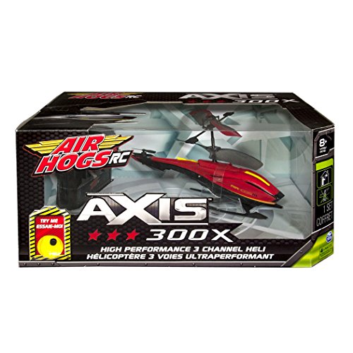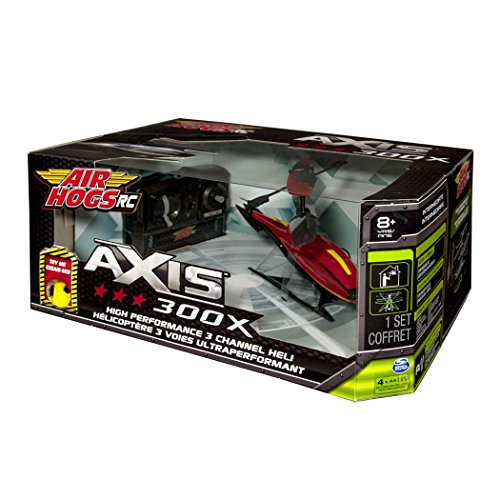 - Feature : Experience seamless flight with the high-performance Air Hogs Axis 300x 3-channel heli! / Axis 300x features gyroscopic stabilization, dual propellers and 6-directional control to give you superior control of in-flight performance! / Crash-resistant construction and materials mean you can push Axis 300x to its maximum limits with confidence! / The Axis 300x is made for pilots ages 8+ and requires 4 AA batteries to power the controller/charger. / Includes: 1 Air Hogs Axis 300xTM indoor RC helicopter, 1 Controller with charging cable and storage, 1 Instruction Sheet