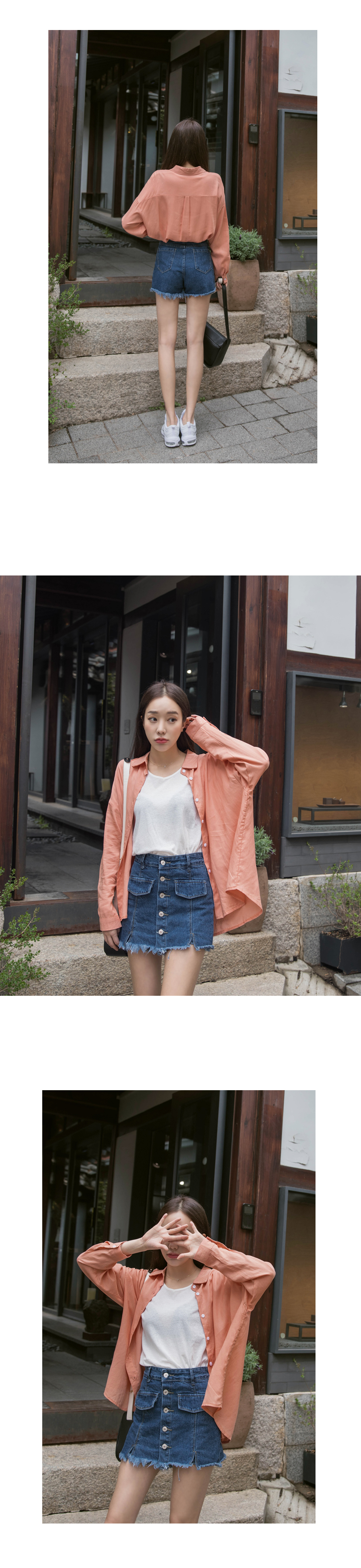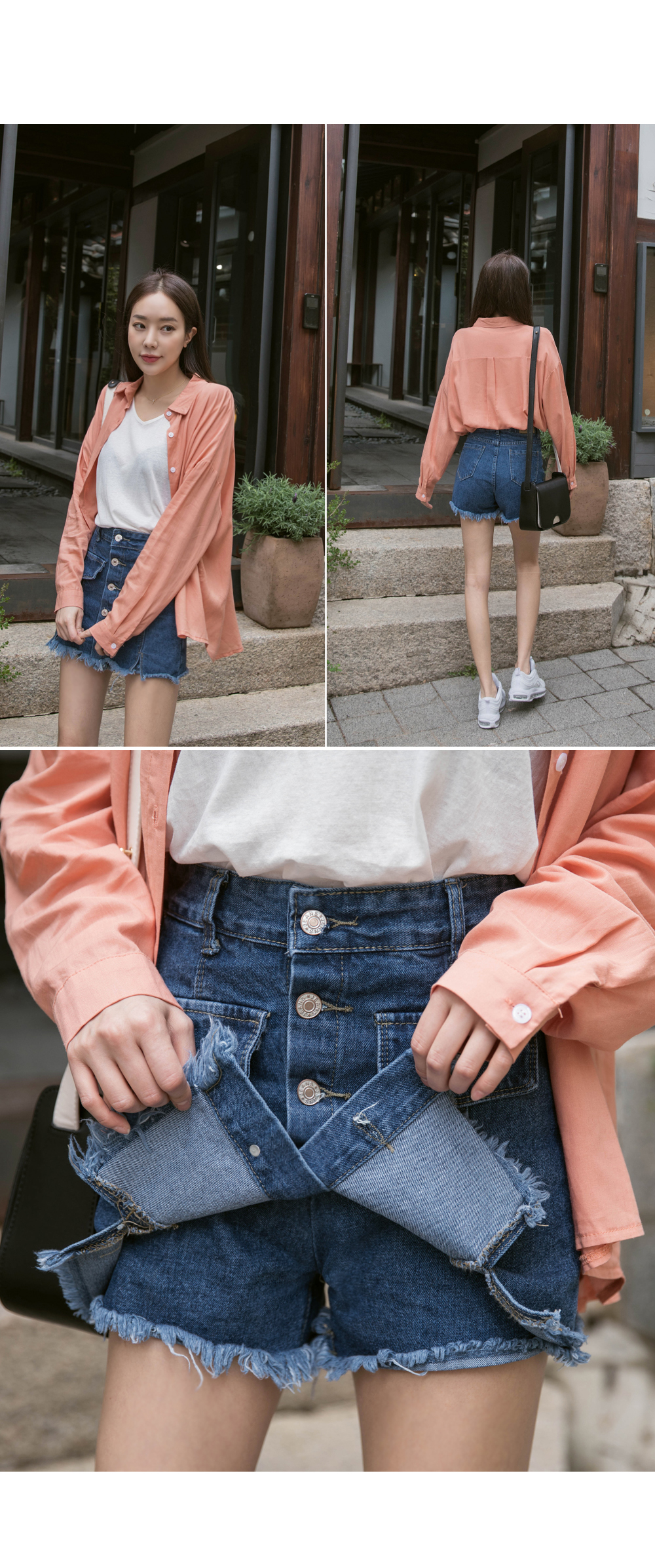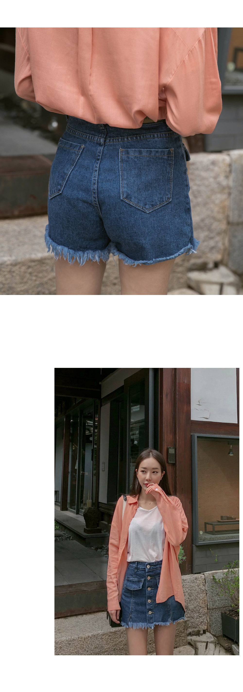 자연스러운 밑단 풀림으로 빈티지한 매력을 살렸으며