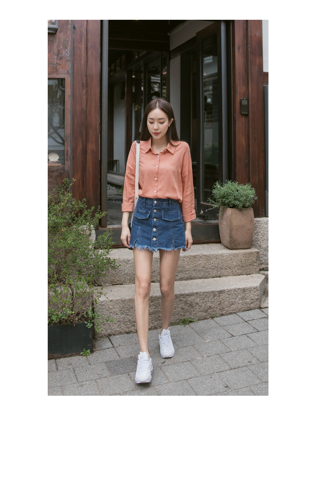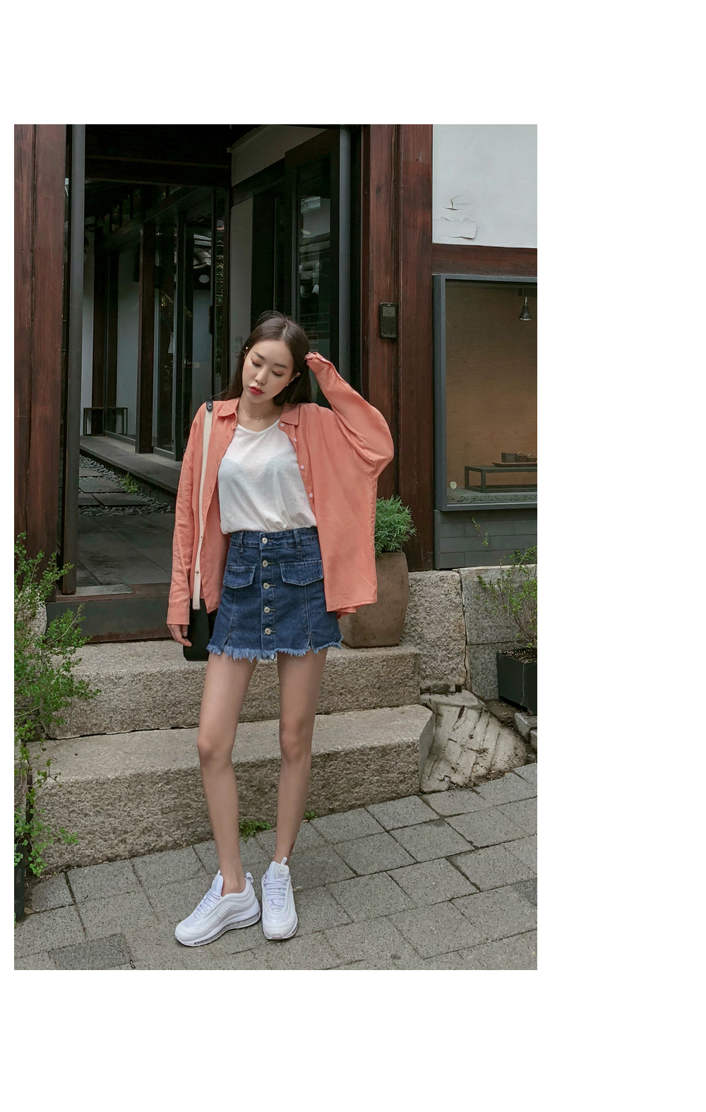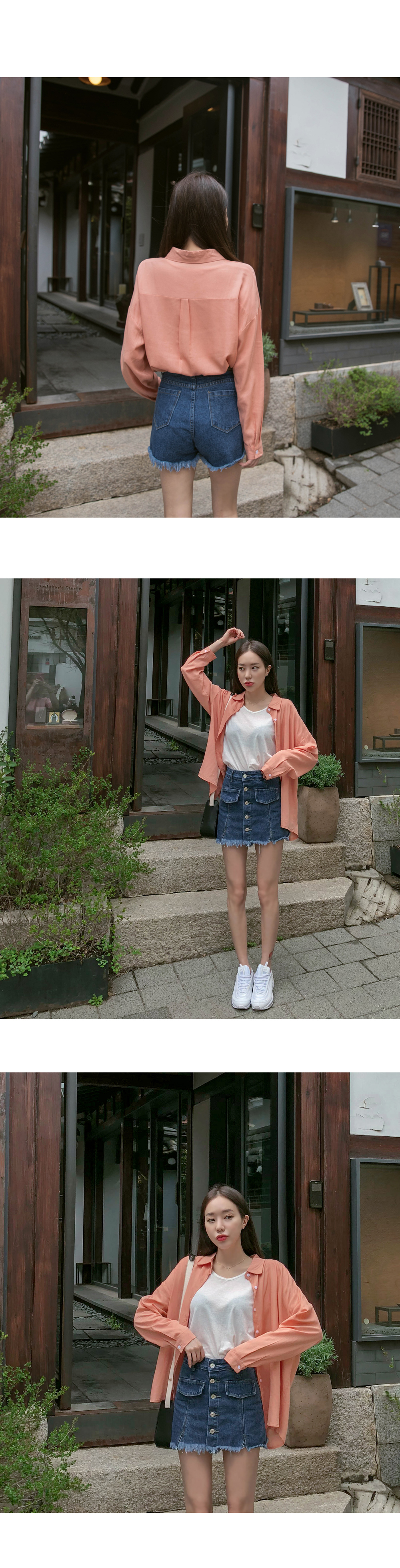 자연스러운 밑단 풀림으로 빈티지한 매력을 살렸으며
