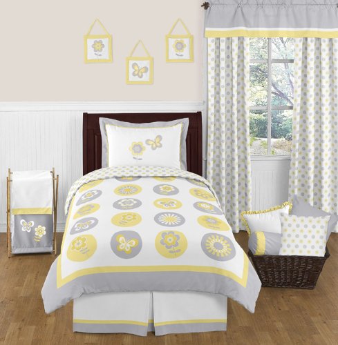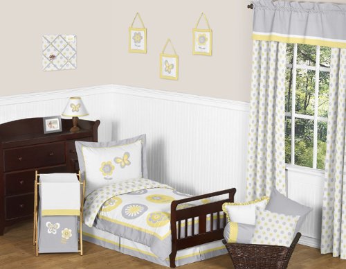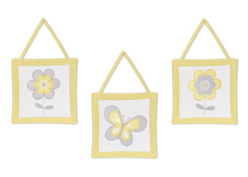 Sweet Jojo Designs Yellow, Gray and White Mod Garden Girls Flower and Butterfly Wall Hangings
