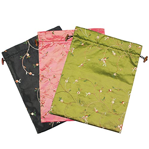 -. Brand : kilofly -. ClothingSize : One Size -. Department : womens -. Feature : Material - Silk blend / Drawstring closure / Ideal as a gift bag and storage uses / Includes 3 silk jacquard travel bags with colors as shown in the photos / Size: 36 x 28 cm / 14 x 11 inch (L x W) -. ProductGroup : Shoes -. ProductTypeName : SHOE_ACCESSORY -. Size : One Size -. Title : kilofly Embroidered Silk Jacquard Travel Bag, Lingerie & Shoes, Value Set of 3