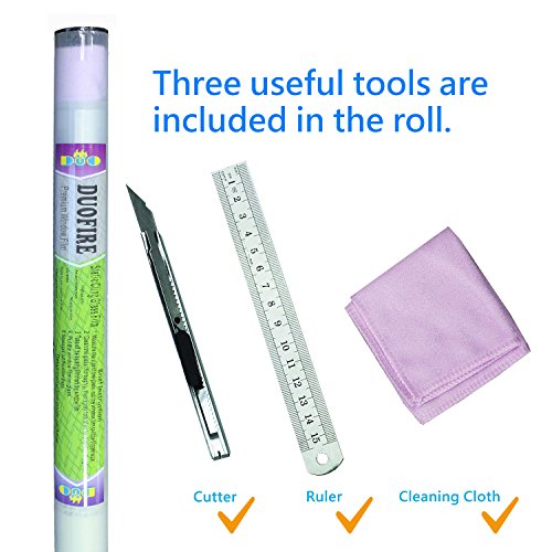FREE TOOLS: Package include: 1 roll of window film; 1 piece of instruction; 1 piece of professional stainless steel film cutter; 1 piece of stainless steel ruler; 1 cleaning cloth.
