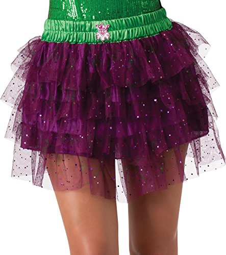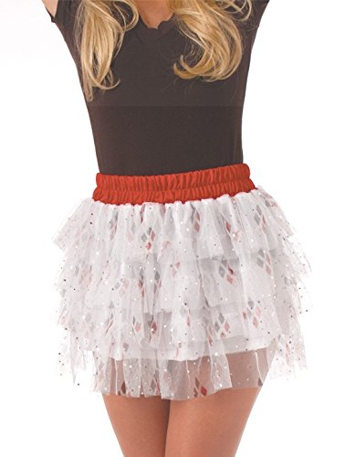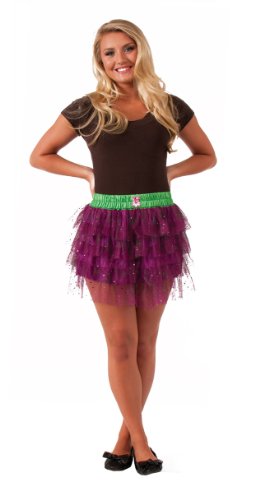 -. Binding : Apparel -. Brand : Rubie's -. ClothingSize : One Size -. Color : White -. Department : womens -. Feature : Layered mesh mini-skirt with batgirl logo / Women's adult standard size designed to best fit dress size 12 / Costumes officially licensed by DC comics / The superhero style collection features a wide variety of characters and costumes / Since 1950 Rubie's costume company has been making dress-up fun with costumes and accessories for the entire family -. Genre : Sexy Costume Separates -. IsAdultProduct : 0 -. Label : Rubies Costumes - Apparel -. Manufacturer : Rubies Costumes - Apparel -. MPN : R35076 -. PackageQuantity : 1 -. PartNumber : R35076 -. ProductGroup : Apparel -. ProductTypeName : ADULT_COSTUME -. Publisher : Rubies Costumes - Apparel -. Size : One Size -. Studio : Rubies Costumes - Apparel -. Title : Rubie's Costume DC Comics Justice League Superhero Style Adult Skirt