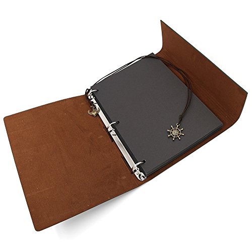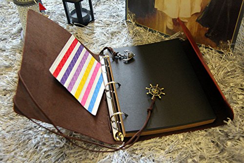 Hand Scrapbook DIY Vintage PU Leather Family Photo Mini Album Book with Belt,Paste the beauty Photo in the Black Card and write down your Mood, Do the DIY Album