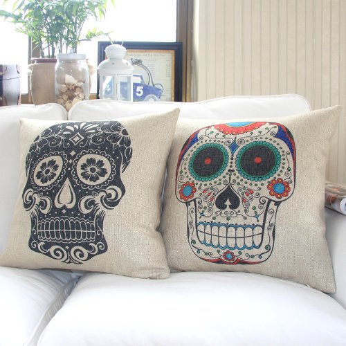 - Title : 5SHEEPgs SKULL Linen Cloth Pillow Cover Cushion Case 18"(black)