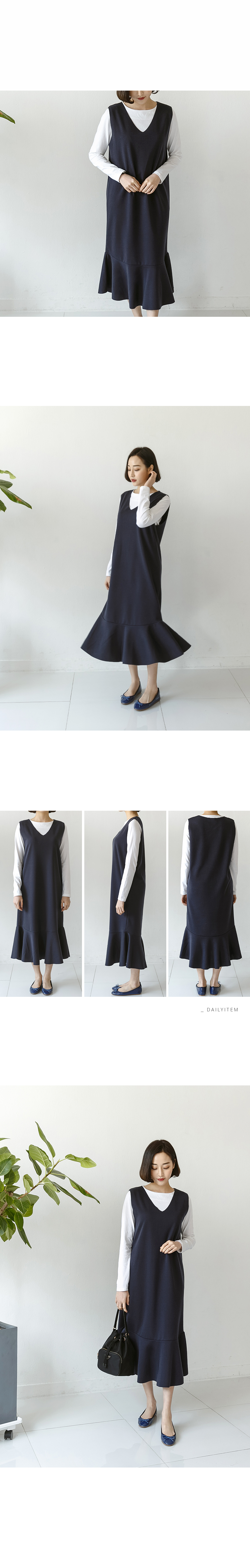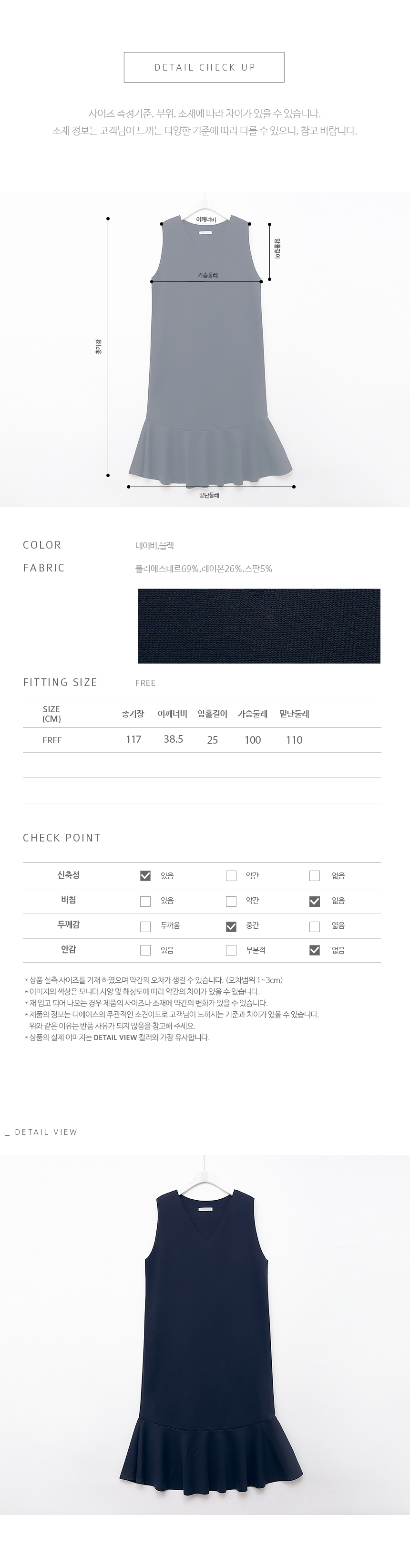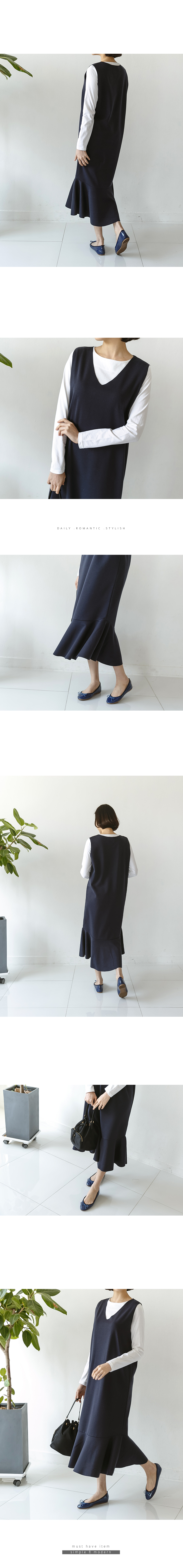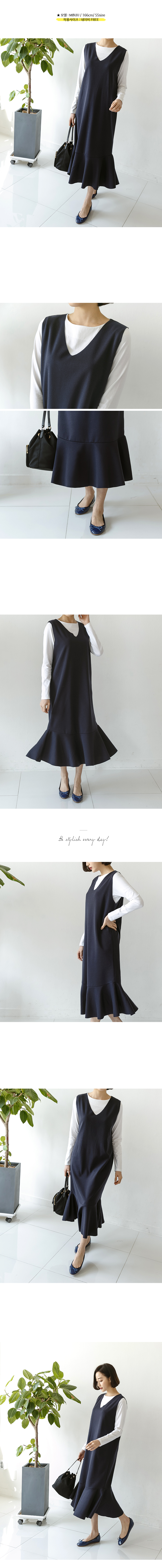 여성스러운 브이넥에 소매 없이 이너와 함께 코디하기 좋은 머메이드라인의 롱 원피스예요 목선과 암홀은 내추럴하게 컷팅된 스타일로 편안하게 툭 떨어지는 일자라인의 내추럴 핏이 편안하게 입기 좋은 스타일의 원피스랍니다 산뜻한 컬러감의 티셔츠나 단정한 셔츠 등에 함께 코디하기 좋은 원피스로 가성비 최고의 코디 아이템이에요 색상은 네이비, 블랙 사이즈는 FREE44~66반 ▼ 관련상품 : 해리 배색 데일리 티