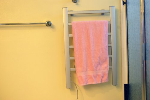 - Feature : Aluminum frame, brush chrome-plated finish / Minimal assembly required: includes wall mounting brackets or freestanding feet / Plugs into standard outlet:110-120V, with on/off switch, UL approved / 6-Foot cord engineer with dry lined power for each / Temperature reaches 122 F optimum temperature within 30 minutes