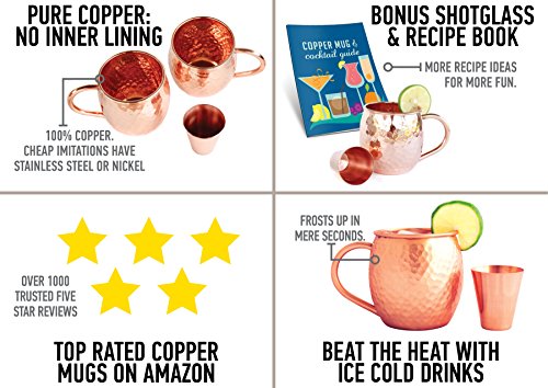 100% COPPER--No nickel, stainless steel, or food lacquer lining! These copper mugs are the real deal--drink the moscow mule the way it was meant to be enjoyed, with a handcrafted pure copper mug. With 900+ 5 star reviews, you can buy these copper mugs with confidence.★