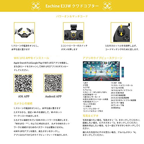 원본상품명: EACHINE E33W ドロン カメラ付き 空撮 WiFi FPV リアルタイム スマホで操作可 2.4G 6軸ジャイロ LEDライト RC クアッドコプタ RTF ブラック