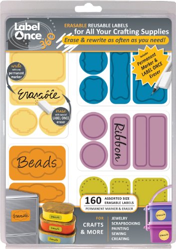 Jokari Label Once Crafts and More Erasable Labels Kit with 160 Labels, Eraser and Pen