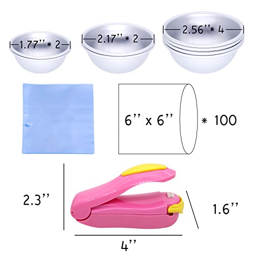 DIY Metal Bath Bomb Mold 3 Size 4 Set - with 100 pcs Shrink Wrap Bags 6 x 6 Inch - BONUS Mini Sealer - for Bath Bomb Making, Handmade Soaps and Crafts - with Instructions (molds+100pcs bags)