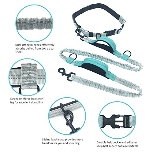 Studio : Mosun Publisher : Mosun Binding : Misc. Product Description Features: Dual Control Handles Dual built-in handles allow you to control your dog more easily,prevent the dog breaking stride and fighting. Reflective Stitching Luminous reflective stitching on the leash and waist belt provides added visibility for safe,you and your dog can enjoy a more safe training,running,walking or hiking time at night and early morning. Adjustable Waist Belt From 28" to 47",the adjustable waist belt fits most people,enjoy the entertainment with your dog together. Shock Absorbing Bungee Dual bungees built extends to 70" to the best suit all dog sizes and it effectively absorbs pulling from large dogs up to 150 lbs,minimizing back strain and the risk of getting hurt for both you and your dog. Convenient Belt Attachment Easy slide belt clip allowing your dog move easily from side to side,provide more freedom for you and your dog,two metal clasps in two side of the leah ensure a convenient for your daily life. Prenium Quality Restraining even heavy-pulling dogs through springy bungee made of durability and weather-proof material and extentable bungee the ensure the leash used for years to come
