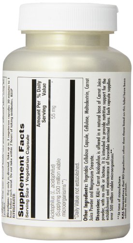 Product DescriptionEach capsule of kal carrot acidophilus is intended to provide nutritive support for the establishment and maintenance of favorable intestinal flora.0