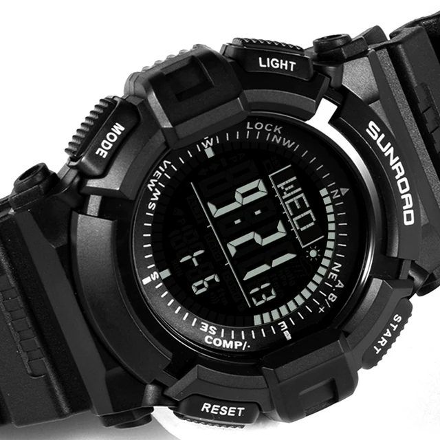 상품 내용 2017 새로운 도착 SunRoad Mulfunctional 스포츠 인과 시계 고도계 기압계 나침반 스톱워치 남성 손목 시계 스포츠 시계 FR823B 설계 특별 등산객 팀, 야외 팬, 여행 팬. 결합 고도계, 기압계, 나침반, 보수계, 세계 시간, 일기 예보, 카운트 다운 타이머, 정지 시계, 시간 및 날짜 등 포장 상세