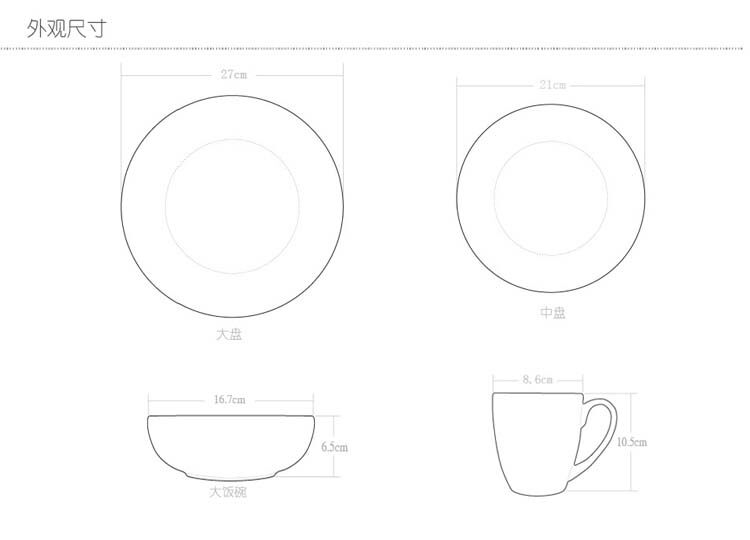 [16件套装] 27cm大盘、21cm中盘、16cm碗及马克杯各4只