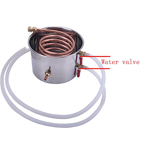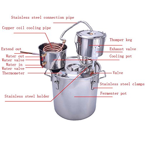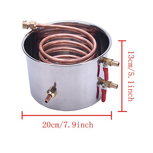 Upgraded 5Gal 18L Copper Moonshine Still Specification: Condition:100% Brand New Boiler Volume:5Gal/18L Boiler diameter(Inside):30cm/11.8 inch Boiler height:30cm/11.8 inch Cooling pot diameter(Inside):20cm/7.8 inch Cooling pot height:13cm/5.1 inch Cooling copper pipe length:160cm/63 inch silicone hoses length:90cm/35.4 inch Net weight:4.4 kg/9.7 lb Boiler Material:Stainless steel Cooling pipes material:Red copper Feature: Independent airway design- allow the distillate to rise faster and delivery a higher purity Multifunction - Can be used for distilling fruit wine, distilling water, purifying water, distilling brandy,etc All stainless steel construction and welding technique - avoid any health problems associated with copper and solder constructed stills Package Include: 1x Stainless steel boiler with 4 clamp and thermometer 1x Thumper keg 1x Worm(cooler) 1x Air valve(for fermentation use) 2x 90cm silicone hoses Copper cooler with stainless steel cup and copper pipe English Instruction 0 |