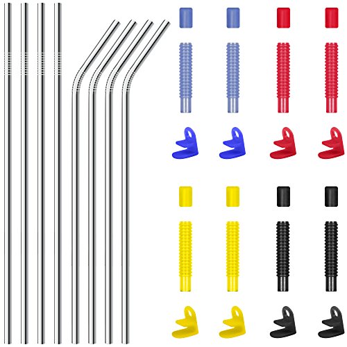 Stainless Steel Drinking Straws Set of 8 with Cup Buckle & Cover and 2 Cleaning Brushes, DLAND 10.5 inch Drinking Straw for 30 oz Tumbler and 20 0z Tumbler, Fit for Yeti Rtic