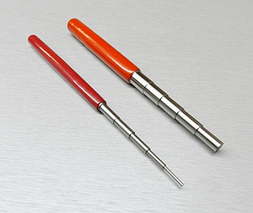Mandrels are designed for wire wrapping used by bead and wire artists. Mandrels are 6" in length, made of steel machined, will give consistent size loops time after time come with non-slip PVC handle. Mandrels are rounded and smooth so wire will not be scratched. A very well made tool used by beginners and professionals.