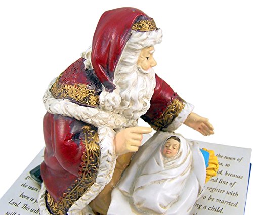Adoring Kneeling Santa on Bible Resin Christmas Statue Musical Figurine, 8 Inch
