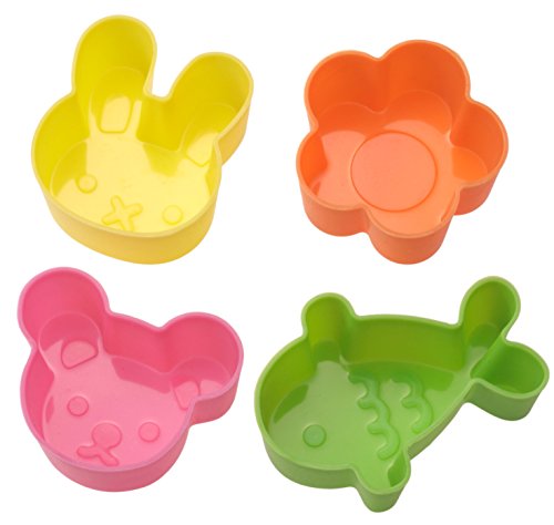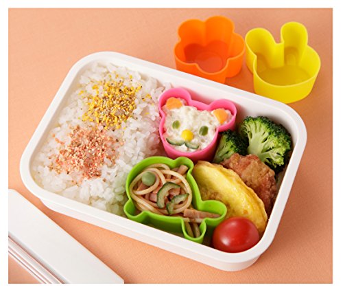 This Silicon Food Cup set includes 3 pieces of animal silicone cups and 1 flower shape (Total of 4 pieces: rabbit, flower, bear and fish) (orange, pink, yellow, and green colors), dishwasher and microwave safe. The silicone food cups are reusable and washable. They help keep your food separated in your bento or lunch box. The orange food cup measures about 1.75 to 2 inch wide and 1 inch deep. You can use to fill up with all sort of side dishes. These cute silicone food cups are not great for bento lunch decoration, but also a party meal. Microwave, Dishwasher OK Refrigerator OK Size - Flower shaped bento cup - 1.8 x 2 inches (1 inch deep) - Bear shaped bento cup - 2.15 x 1.75 inches (1 inch deep) - Rabbit shaped bento cup - 2 x 1.75 inches (1 inch deep) - Fish shaped bento cup - 2.65 x 2 inches (1 inch deep) Heatproof Temperature 284 degrees Fahrenheit or 140 degrees Celsius Material - Silicone