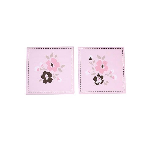 - Nautica kids Isabella 2 piece canvas wall art Beautiful floral pattern appliqued onto the canvas, stretched on wooden frame Each measures about 10" x 10" and come ready to hang Colors are light pink, medium pink, touches of brown, taupe and white