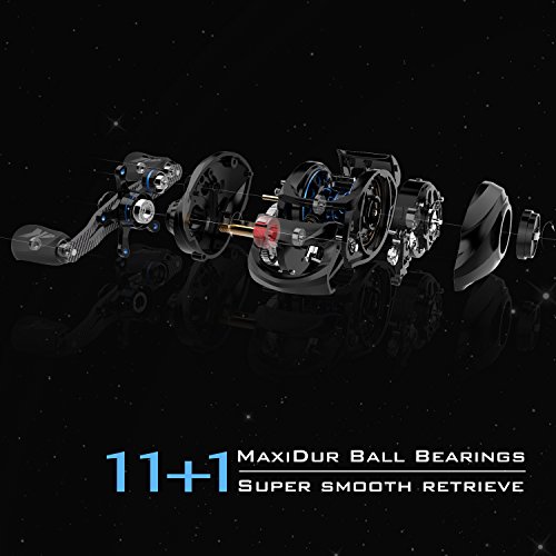SMOOTH - 11 + 1 shielded corrosion resistant MaxiDur ball bearings, hard anodized aero-grade aluminum spool, powerful precision matched 6.3:1 ratio gears, instant stop anti-reverse for devastating hook sets, and braid line ready line guide insert.