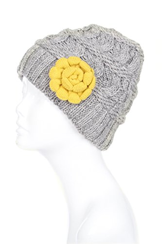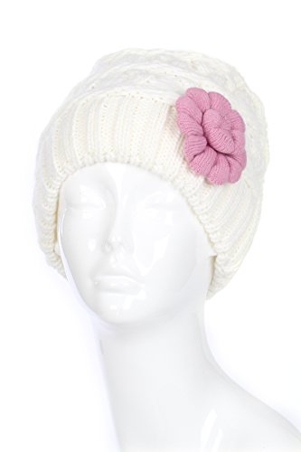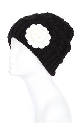 Binding : Apparel Product Description Women, teens and tween girls can stay stylish and warm with this skullie beanie hat during the winter season, made of knit that has a bit of stretch to accommodate different head sizes. Look just like the celebrities, in a trending chunky knit in a cool cable design, uniquely adorned with a stylish flower, this thick beanie cap will have heads turning. Designed in solid colors, choose a contrasting flower color for stand-out appeal or the same color for subtle elegance for this one of a kind fashion accessory. 9 inch crown height (length). Plush chenille fleece lining provides warmth and helps keep out the wind, keeping your head and ears cozy and comfortable when the temperature starts to drop and the snow begins to fall. Whatever your outdoor activity- commuting to work, running errands, walking the dog, going out at night, looking uniquely fabulous (even on bad hair days!), keep the chill away and fashion high with one of these cute hats with winter garden appeal. Great gift item and stocking stuffer. If you have any concerns with this item, please contact us at Accessory Necessary on Amazon right away so that we can figure out a way to make you happy. What are you luxing for? Please note, colors may appear different than on screen due to screen monitor settings and dye lots. NYC seller. 0