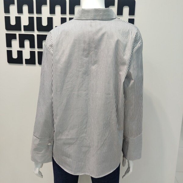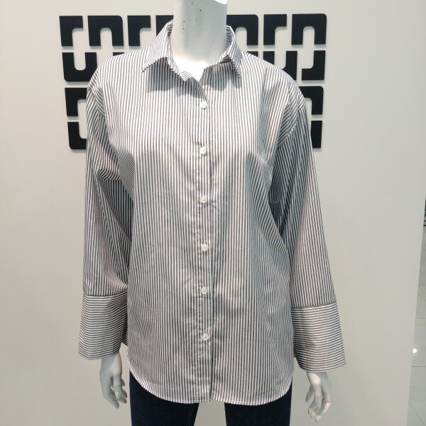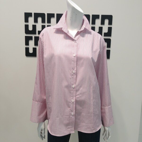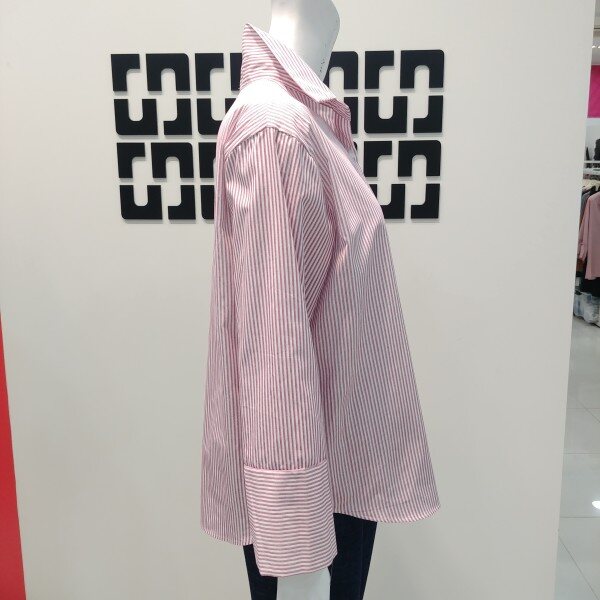기본 카라의 스트라이프 블라우스 입니다 내츄럴하게 입기좋은 케쥬얼 블라우스로 데일리룩으로 편안하게 입기 좋습니다