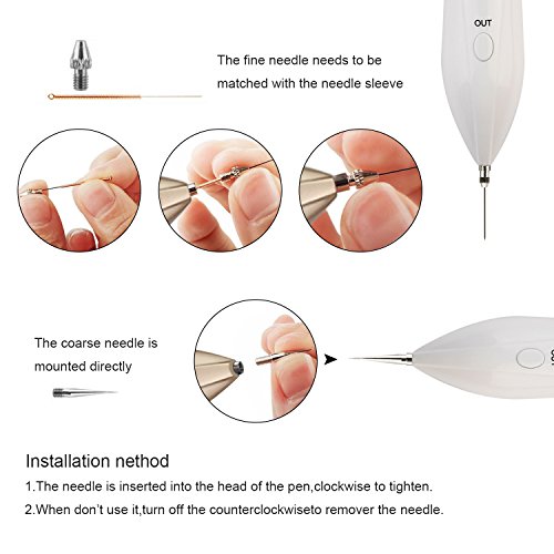 Our mole removal pen is designed to helps you keep away from skin tags then makes your skin smooth and delicate. The coarse needle is for warts, fleshy, nevus and tattoos, the thin needle is for moles, freckles, spots and other small pigmentation on skin epidermis.