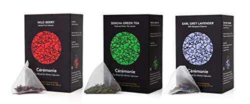 CÉRÉMONIE TEA 3 FLAVOR VARIETY PACK - WILD BERRY HERBAL FRUIT INFUSION, SENCHA GREEN TEA, EARL GREY LAVENDER TEA