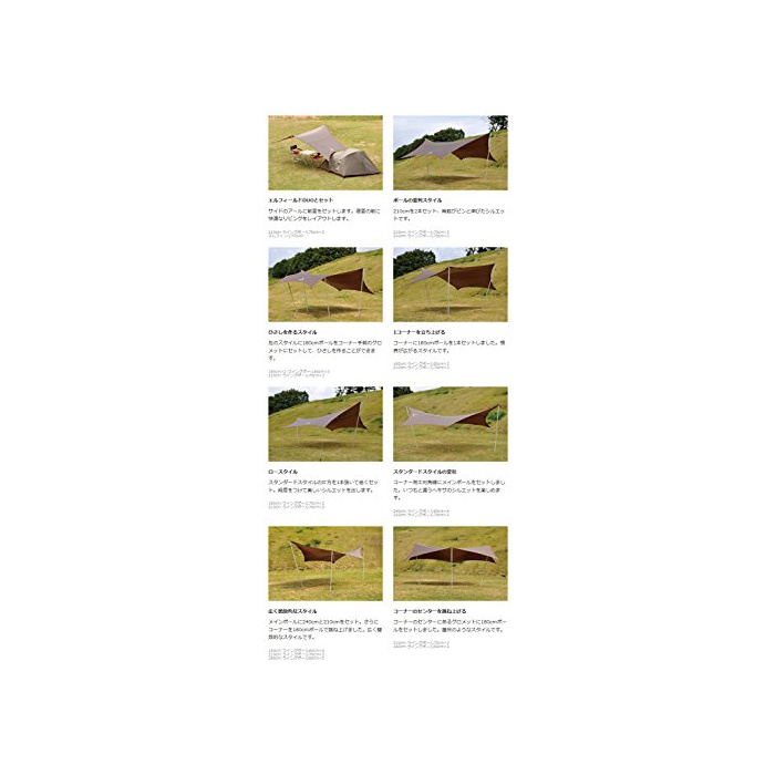 ●세트 내용:타프 본체,자재부2다름 로프10m(×2)고, 자재부 로프3m(×4)고, 캐리 백,폴 케이스,페그(말뚝) 케이스,취급 설명서