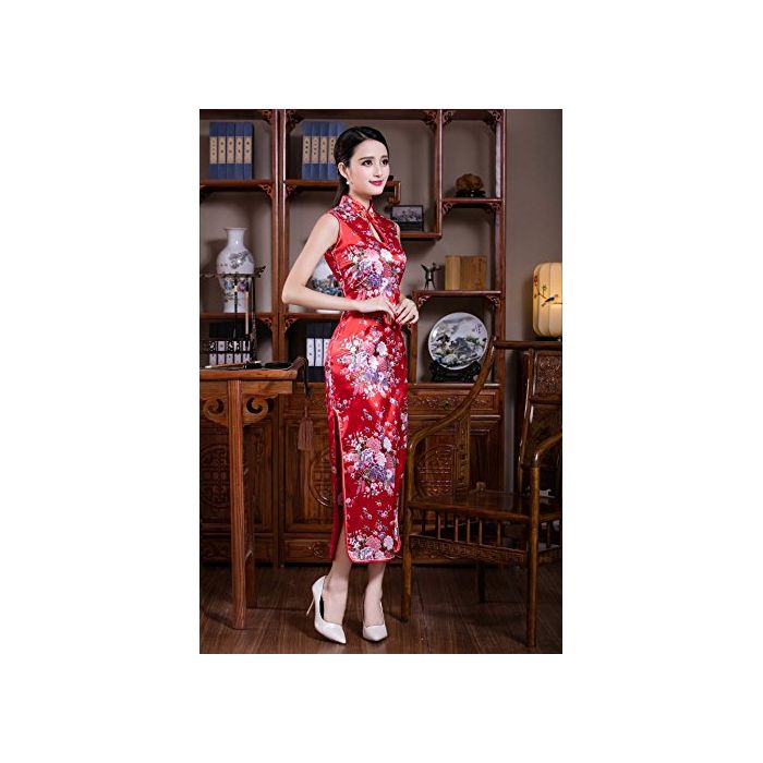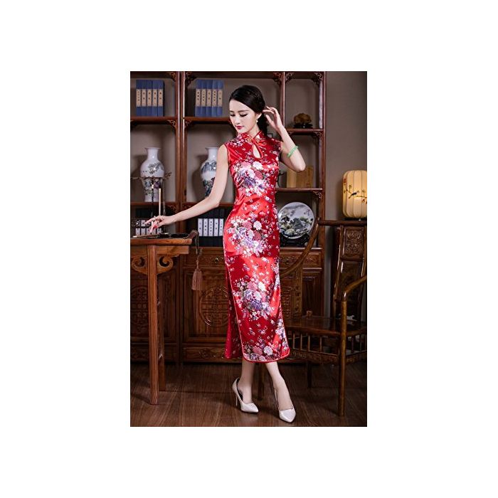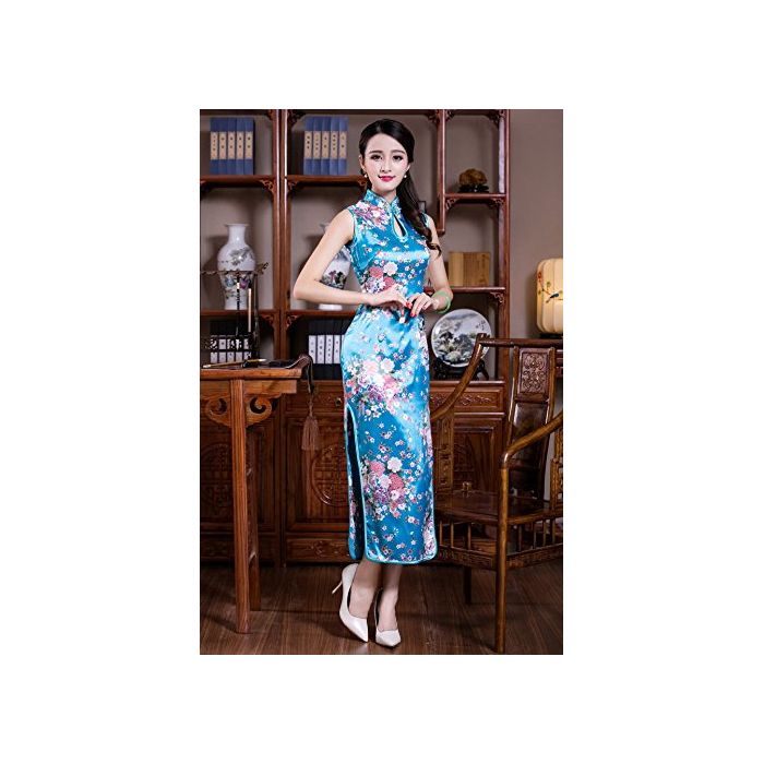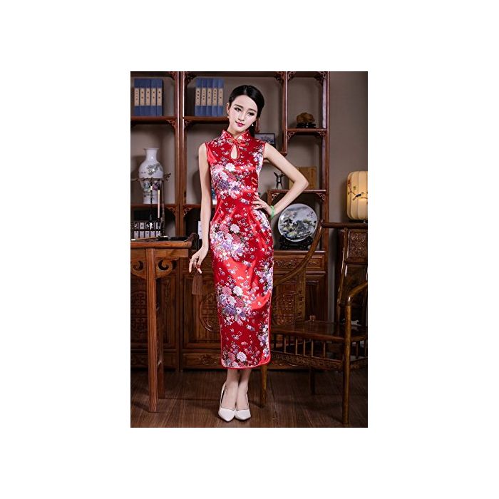 원본상품명: Black Omen (ブラックオ?メン) 光?あり 花柄 プリント ノ?スリ?ブ 胸元オ?プン ロング丈 チャイナ ドレス(レディ?ス、女性用)印刷 模? マキシ丈 袖なし パ?ティ? カラ? ワン