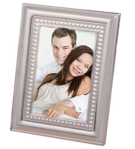 - Versatile and elegant matte silver metal frame favor from Fashioncraft, exquisite beaded design border, central glass covered photo/placecard opening, black velvet hinged easel back for easy photo insertion, measures 2.75" x 3.75"