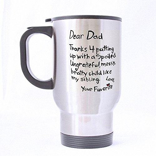 Father's Day Gift Mug - 14oz Funny Novelty Dear Dad Mug, Thanks 4 Putting Up A Child Like My Sibling, Your Favorite (Sliver) Mug Stainless Steel Travel Mugs for Dad / Daddy / Father
