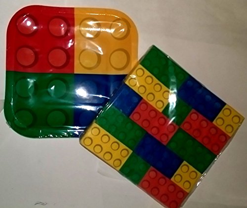 Lego Look Building Blocks Party Kit for 8 Paper Plates & Napkins
