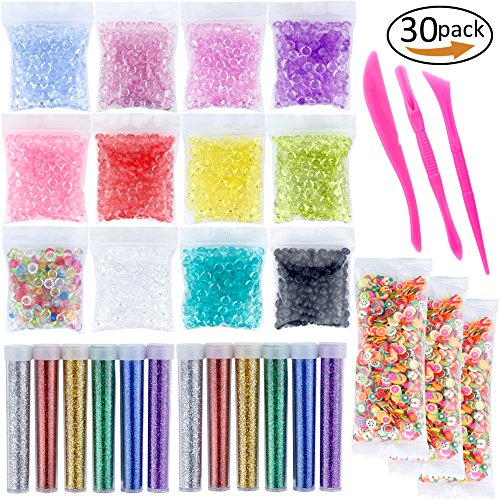 - PACKAGE INCLUDED - 12 pack fishbowl beads,1.1oz/30g per pack,3 pack 1000pcs fruit slices,12 pack glitter shake jars and 1 set of slim tools.