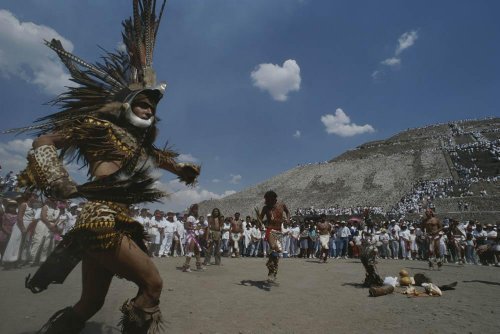 - Title : Traditional Dancing at the Pyramid of the Sun on the Spring Equinox Wall Mural - 18 Inches W x 12 Inches H - Peel and Stick Removable Graphic